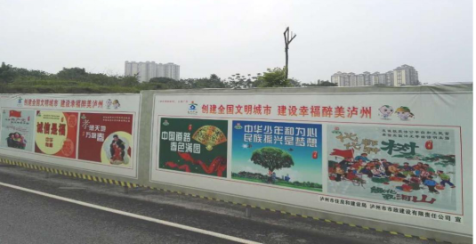 (二)倒流河北部核心區(qū)道路(一期)工程二標(biāo)段,北部核心區(qū)1號(hào)路一段建筑工地圍擋公益廣告、南北濱路及公園項(xiàng)目、沱江新城整體城鎮(zhèn)化項(xiàng)目圍墻廣告也已設(shè)置完畢。